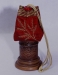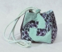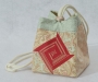 This is an original size Box Bag with contrasting border. It utilizes the pattern's full-size paper-pieced original square rose design on the front and back. The bag is made from cottong fabrics with a heart shaped hand-painted slide and cherry red braided bolo cording.
