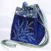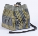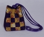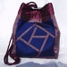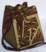 This is an original size Box Bag utilizing a 6" Snails Trail quilt block. The bag is made from African hand-dyed cotton damask fabrics with a fabric covered cord and a hand-painted wood slide.