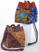 Here are three sizes of the bag sewn using the same printed cotton fabrics. The bag in the lower right is a custom size, and employs a centered motif stamped on silk dupioni fabric.