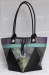 This Peaks and Points Bag utilizes the non-zipper closure of Bag 3 and the right-angle triangle pattern from Bag 2. It was made as a model for Laura Murray (www.lauramurraydesigns.com) using her hand-painted silk fabric and radiance fabric (55% cotton and 45% silk). The buttons are antique and the pendant is mother of pearl.